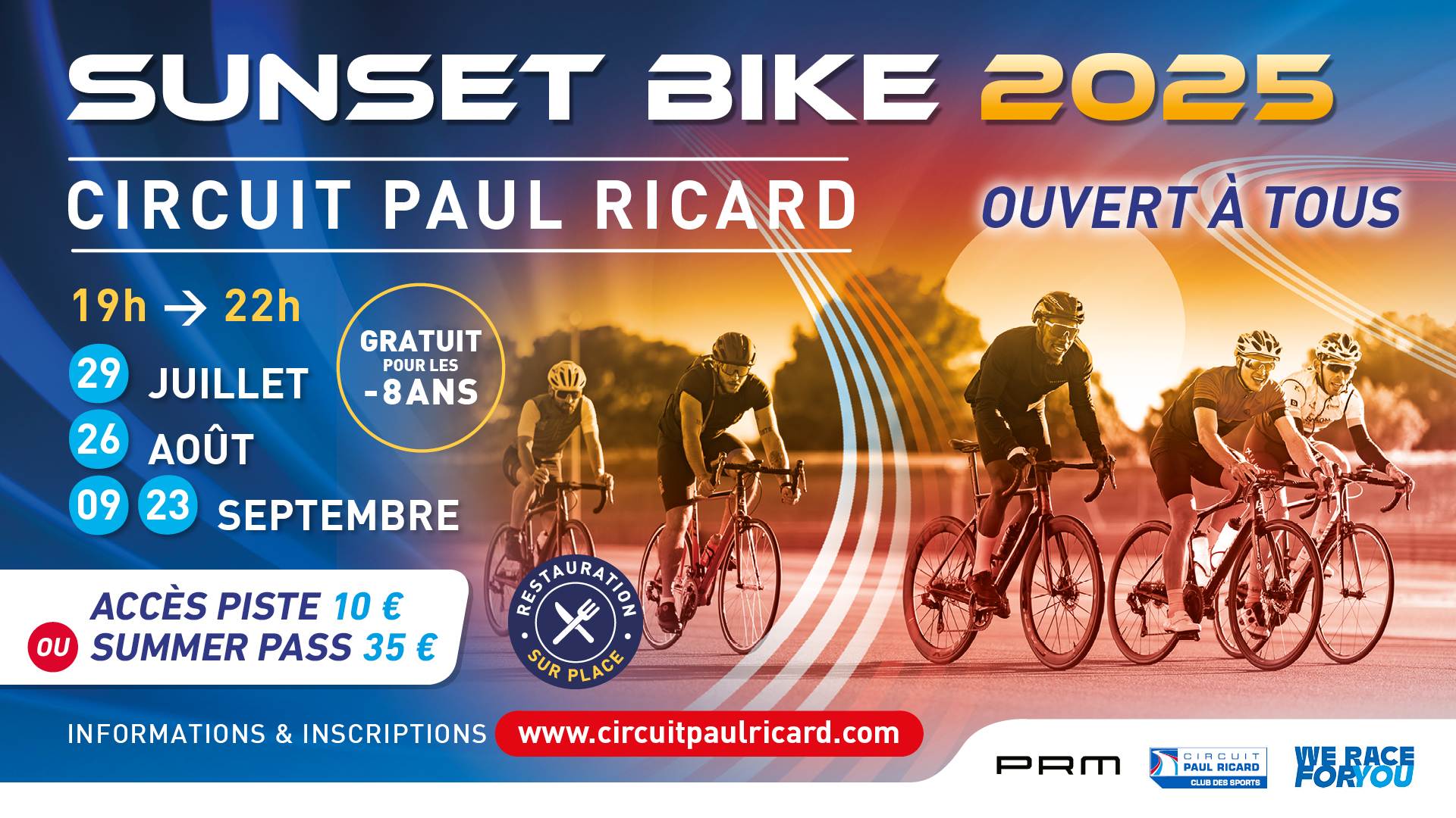 📍 Join us from 7 PM on July 29 at Circuit Paul Ricard for the first fun, active, and unforgettable Sunset Bike evening of the season!