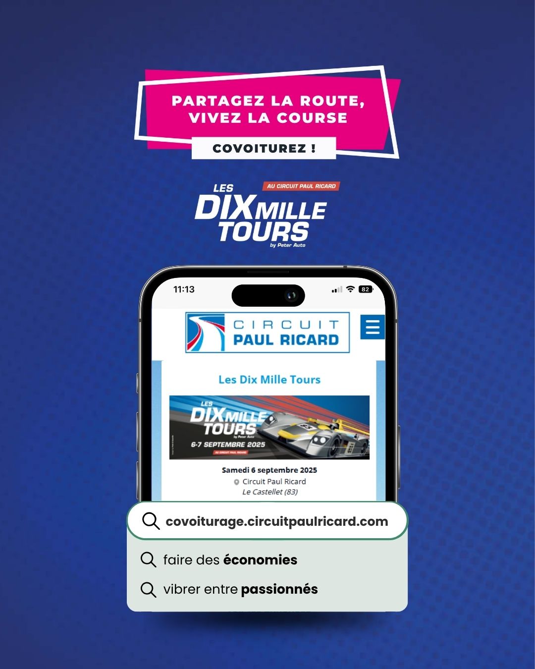 L'événement vintage Les Dix Mille Tours fera son retour au Circuit Paul Ricard les 06 et 07 septembre. À cette occasion, le Circuit Paul Ricard met à disposition de ses spectateurs sa solution de covoiturage, favorisant les rencontres, simplifiant les déplacements et contribuant à un événement plus responsable.